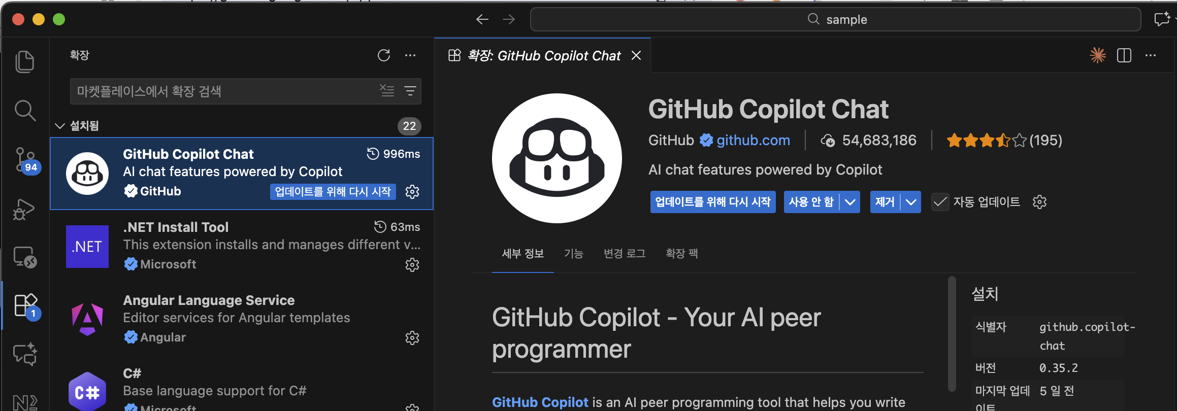 가장 먼저, 실시간 코드 제안을 담당할 Copilot을 설치합니다.