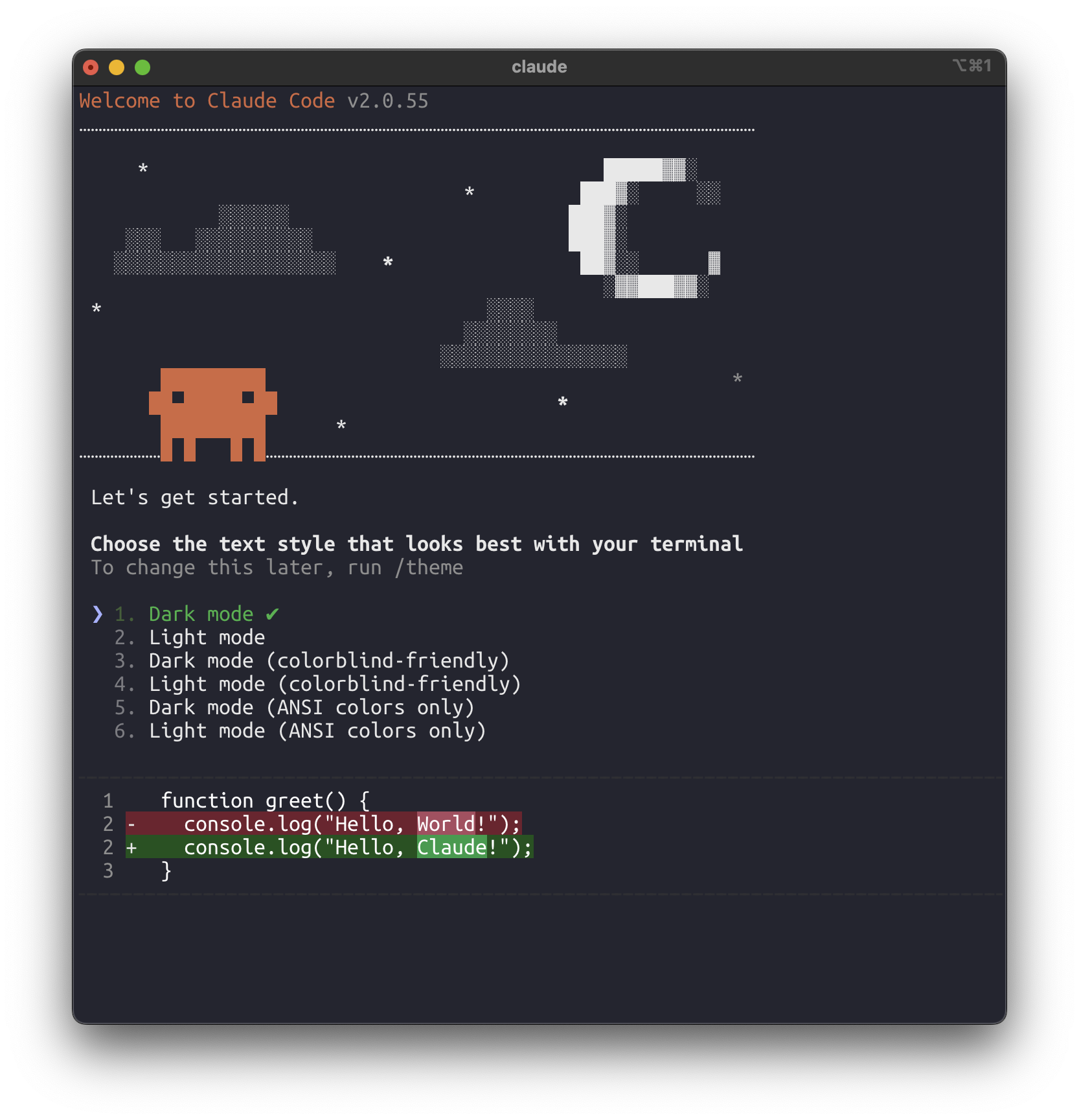 1. 최초로 claude 실행하면 아래와 같이 테마 선택을 하게 됩니다.
